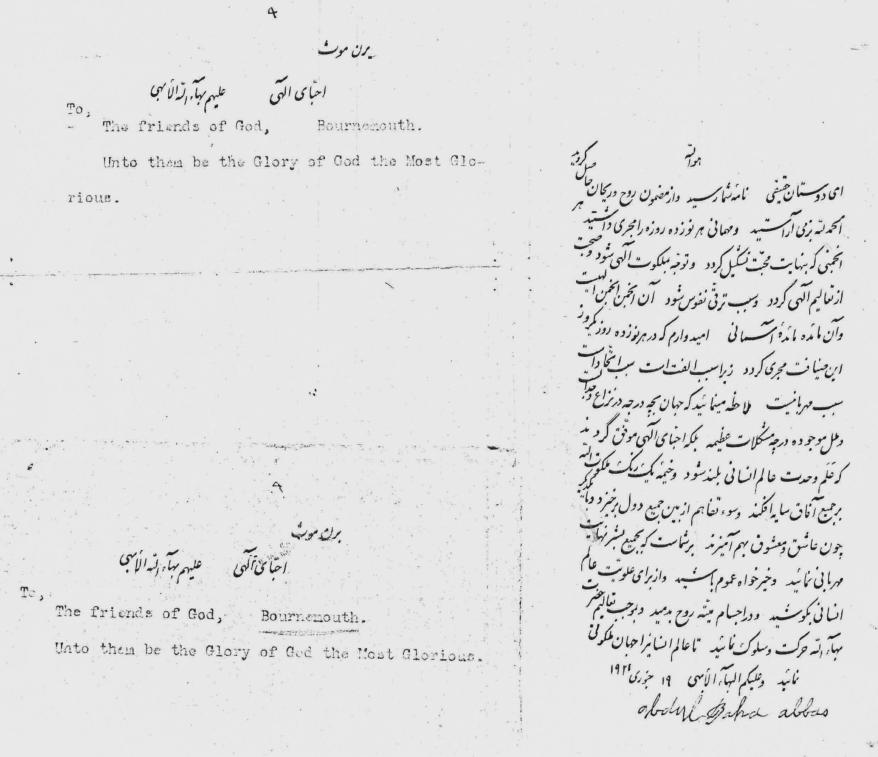 There exists a Tablet of `Abdu'l-Baha addressed to the Baha'is